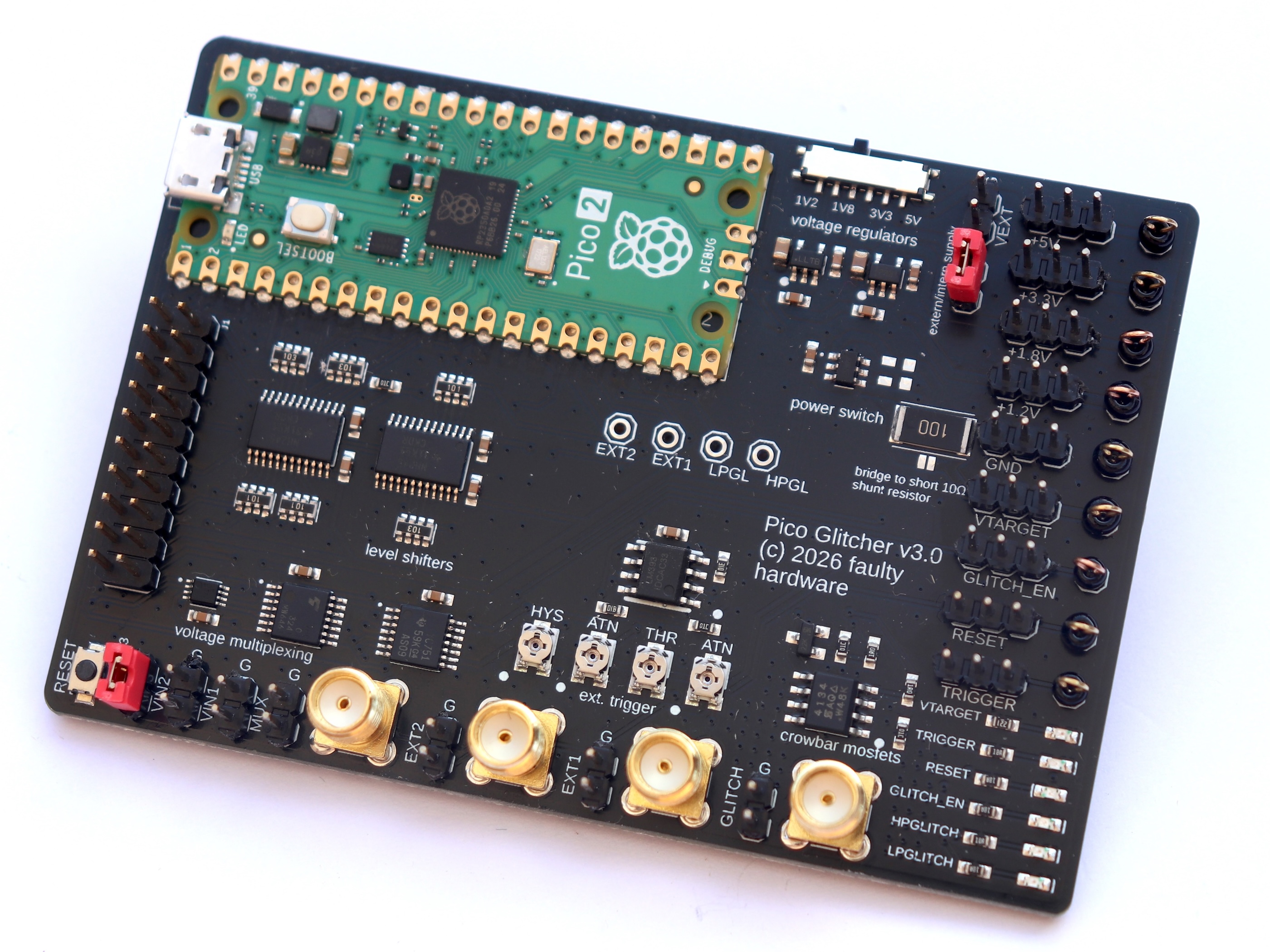 - The Pico Glitcher version 3 is based on the Raspberry Pi Pico 2: higher clock speed, better accuracy in glitching attacks, more power!
